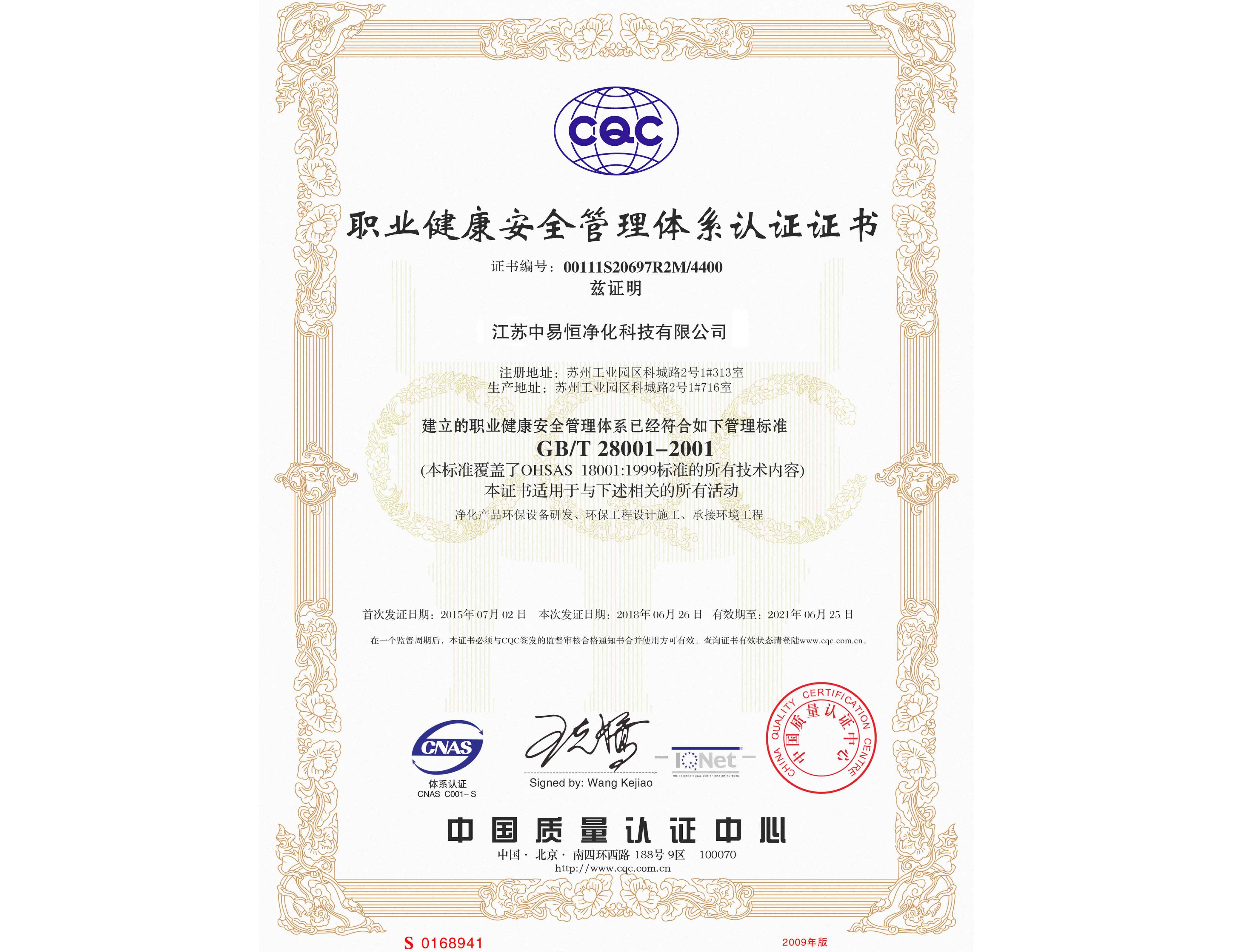 • CQC職業(yè)健康安全管理體系認(rèn)證證書(shū)