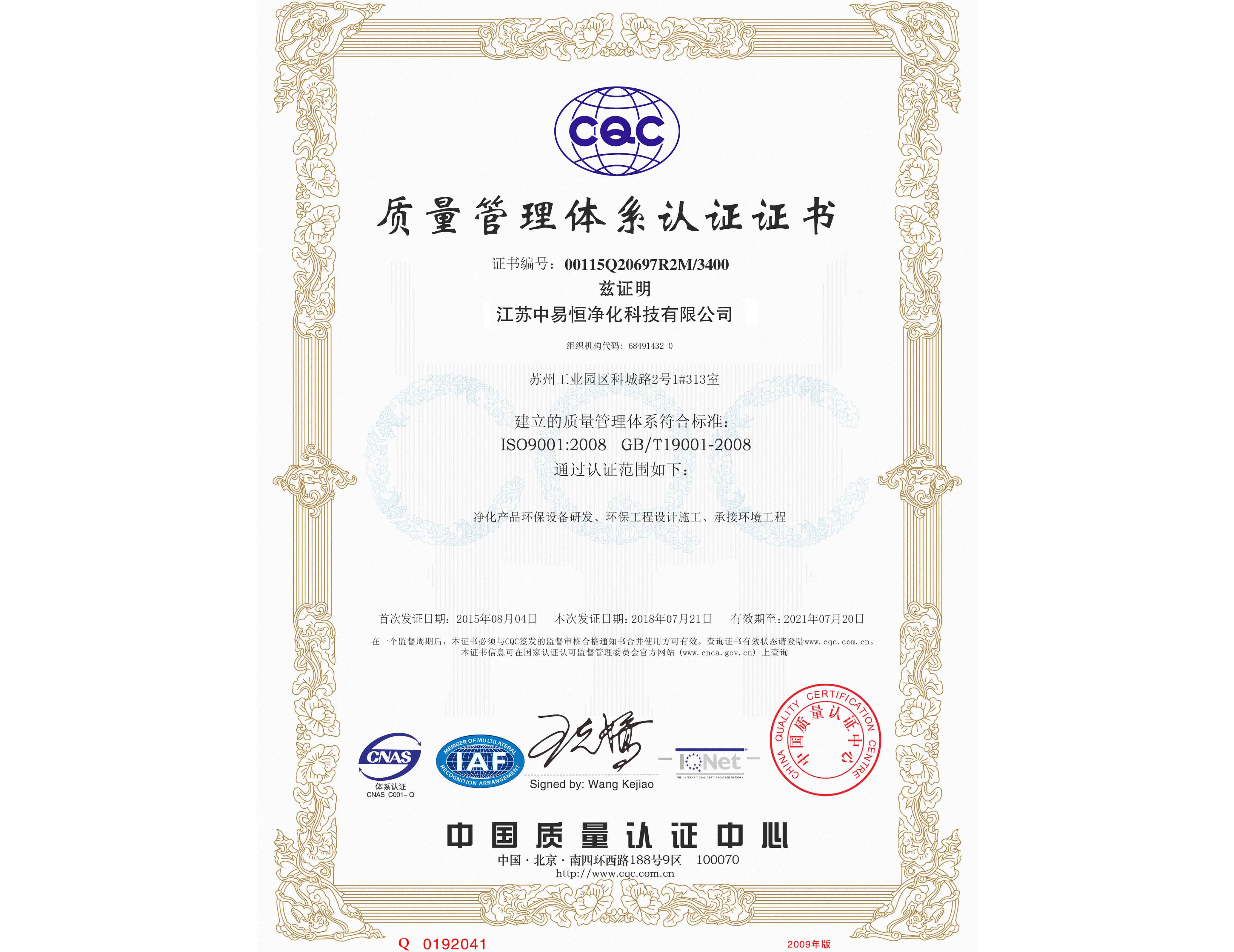 • ISO質(zhì)量管理體系認(rèn)證證書(shū)