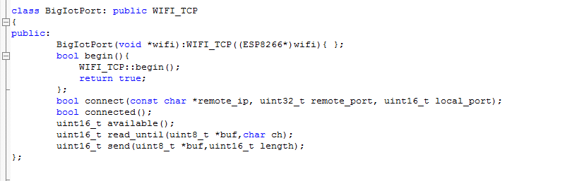 文件bigiot.cpp和bigiot.h 這兩個文件是用戶需要調(diào)用的文件。標準的c++文件。類的結(jié)構(gòu)如下