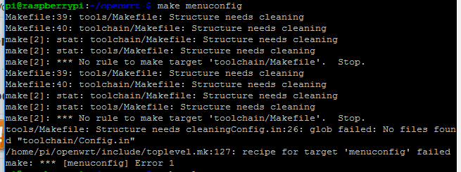 樹莓派在配置openwrt編譯環(huán)境時遇到Structure needs cleaning錯誤。