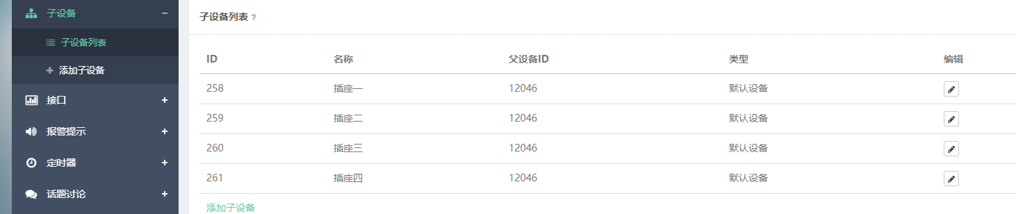 一樣其余三個(gè)對(duì)應(yīng)你的子設(shè)備ID修改